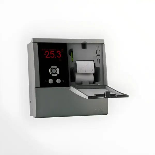 AKO TERMOSTAT / LOGER / PRINTER je profesionalni višefunkcionalni uređaj kompanije AKO Electronics (Španija), koji u jednom kućištu objedinjuje tri ključne funkcije: digitalni regulator temperature (termostat), loger podataka za kontinualno snimanje i memorisanje temperatura, te ugrađeni termalni štampač za štampanje grafikona i izveštaja. Uređaj je namenjen za upravljanje, nadzor i dokumentovanje temperature u rashladnim komorama i rashladnim sistemima, u skladu sa standardima HACCP i EN 12830. Zahvaljujući integrisanom printeru, korisnici mogu u svakom trenutku odštampati temperaturne izveštaje direktno sa uređaja, bez potrebe za kompjuterom.